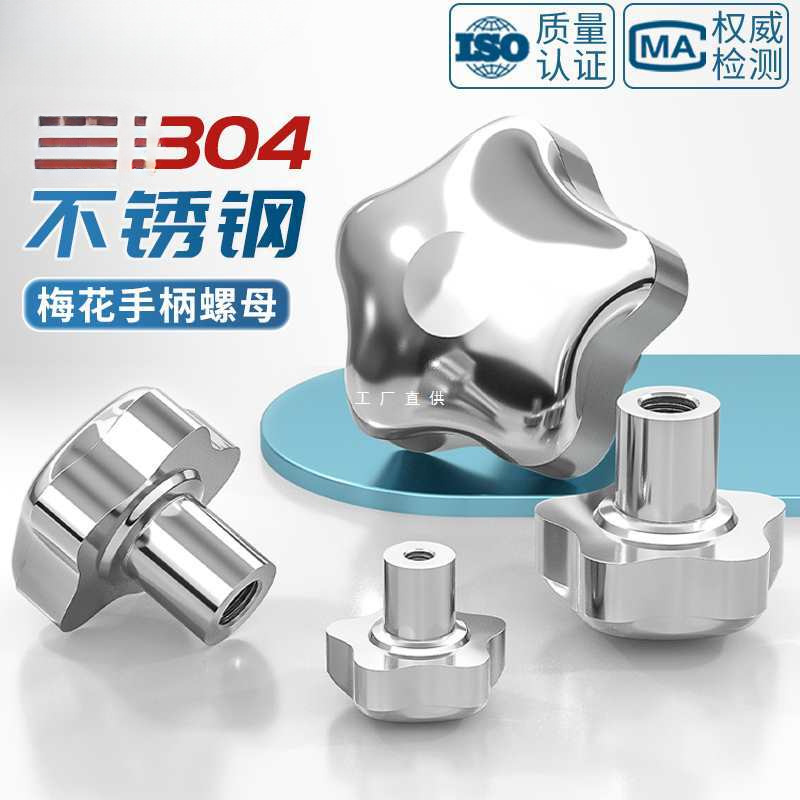 304ステンレス製の梅の花のハンドルのナットの手の輪の星型の手はねじ帽子の星型の取っ手のノブの丸い形のナットをねじる