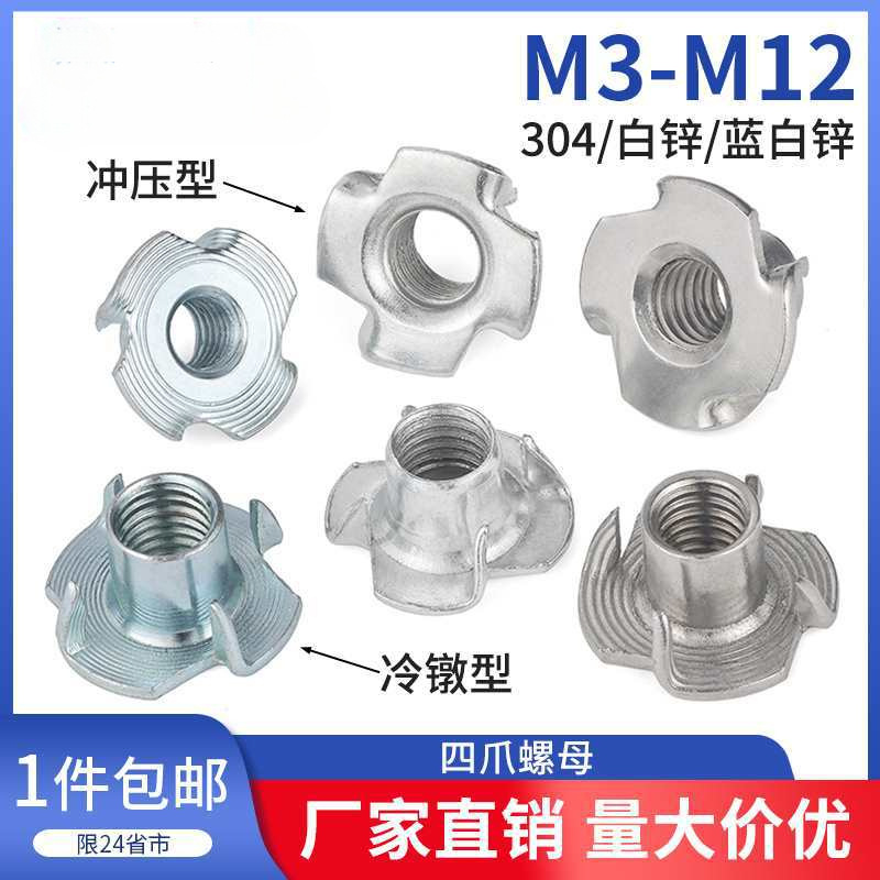304ステンレス/亜鉛メッキ四爪ナット冷間据え込み/プレス家具ナット形スピーカー板モザイク爪形