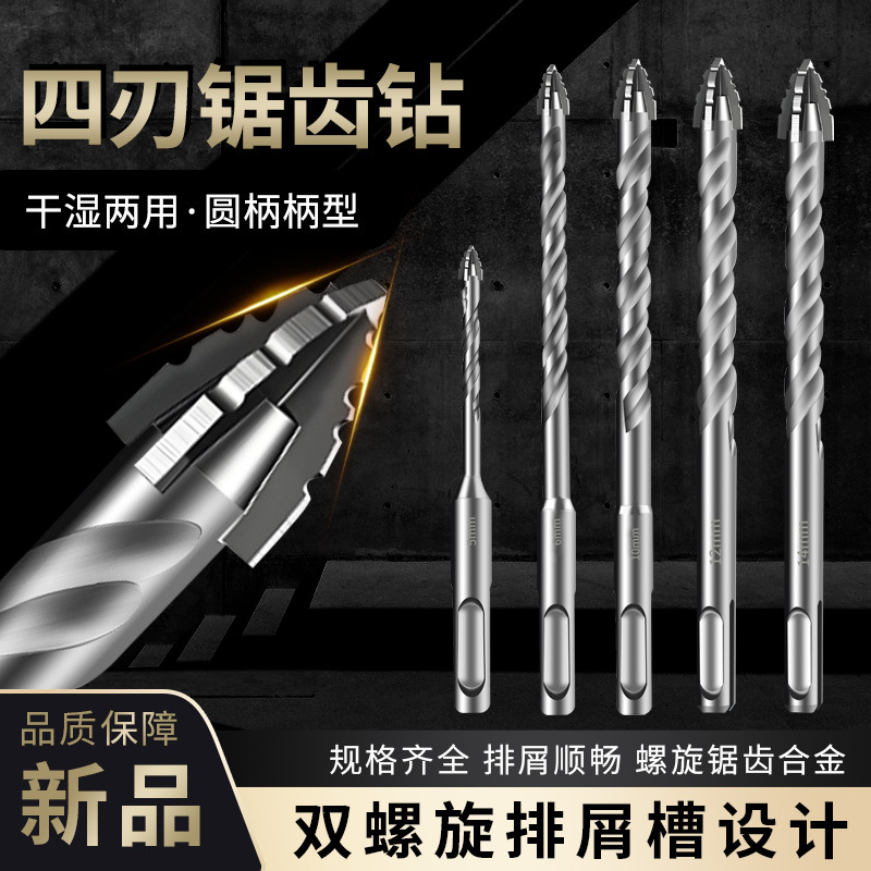 丸柄四刃鋸刃偏心ドリル乾湿両用二重溝延長合金穴開けドリル全磁器大理石ガラスドリル