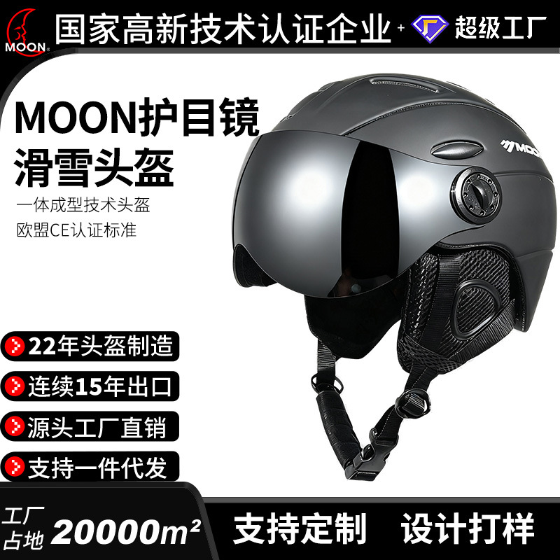 MOON専門スキーヘルメットアジア頭型男性女性単双板雪鏡メガネ一体式スキー鎧帽子保護具