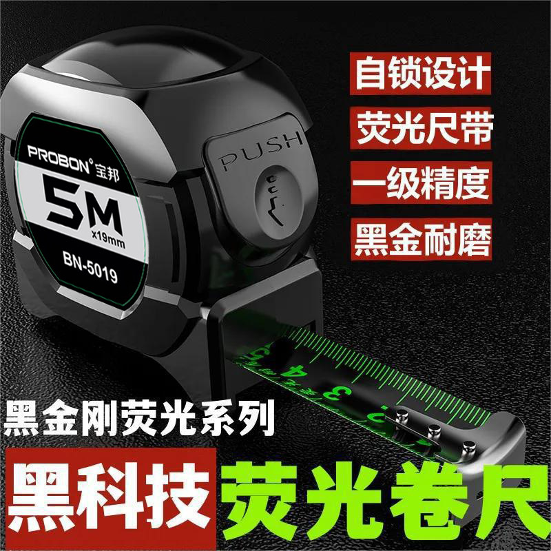 メーカー卸売りクロスボーダー代発セルフロック蛍光鋼巻き尺高精度レーザースプレー黒金計量器耐摩耗箱定規