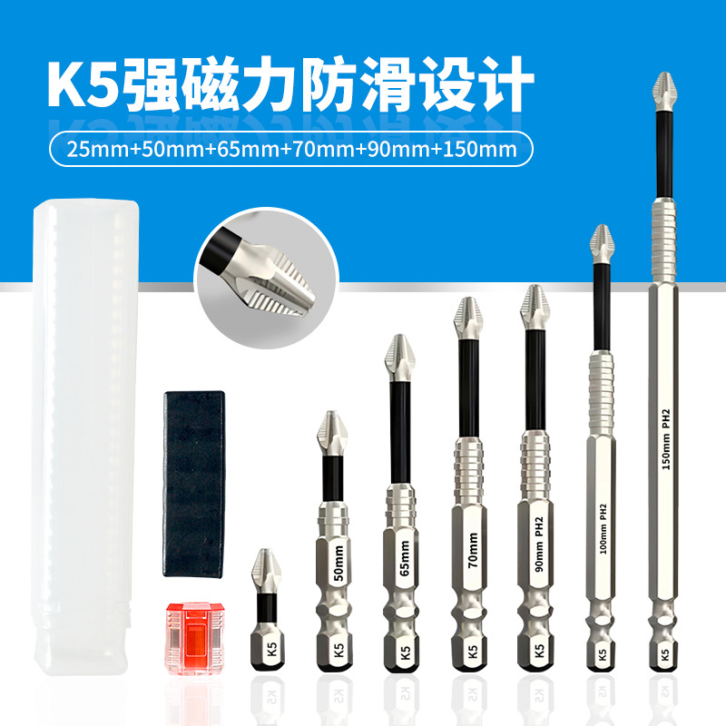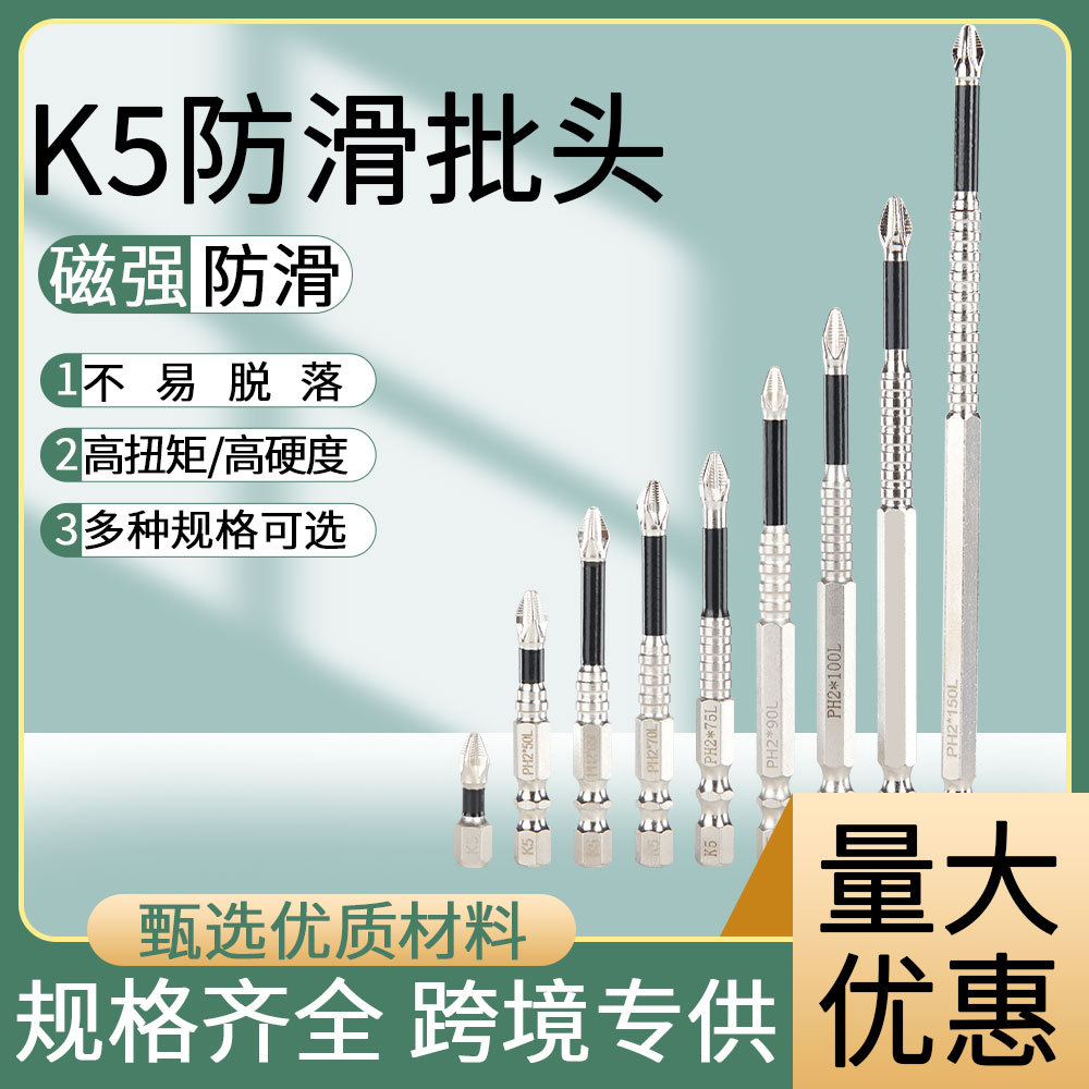 K5 滑り止めビット S2 強力磁気シルバー滑り止めクロスビットハンドドリル電動ドライバー高硬度