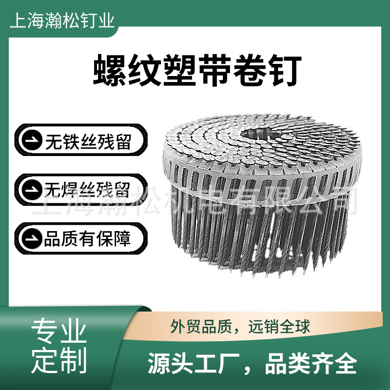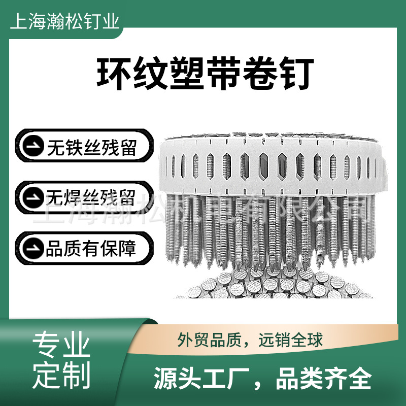 15度プラスチックバンド巻釘、ワイヤレス残留物なし、鉄線、プラスチックバンド巻釘、光棒、ネジリング、オプションのプラスチック巻釘