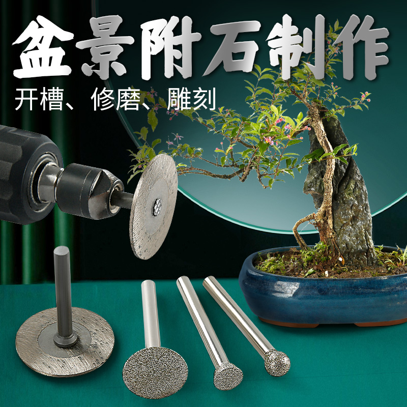 kt石付き盆栽植物、山石、溝、彫刻、研削、切断、底洗浄、電気ドリル加工、鉢植え加工