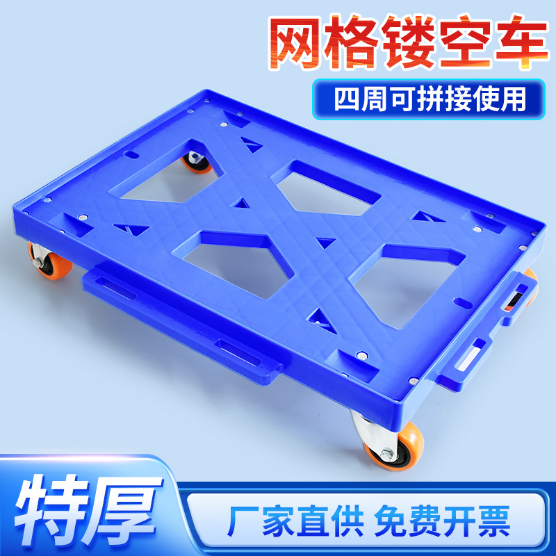 プラスチックスチールフラットベッドサイレントトロリー折りたたみ物流トラック貨物プラスチック肥厚トロリー倉庫トロリー