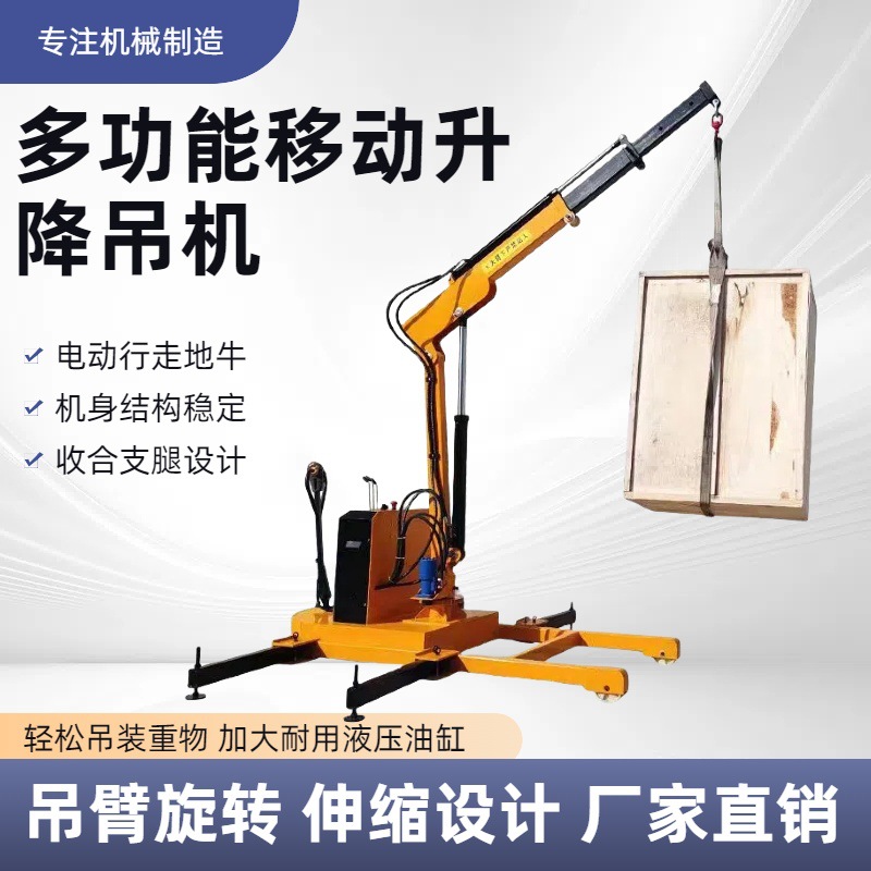 移動クレーン電動油圧小型1トン2トン回転アーム搬送車伸縮簡易昇降クレーン