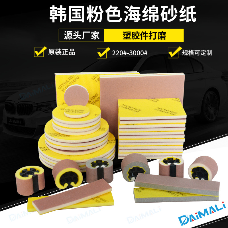 韓国ピンクスポンジサンドペーパー5インチ3インチ2インチ自動車内プラスチック部品磨き携帯電話ケース研磨スポンジ砂