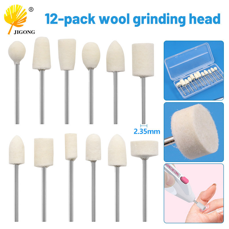12本入りウール研磨ヘッドセットウール研磨ヘッドウールネイルポリッシュ研磨ヘッド研磨ツール