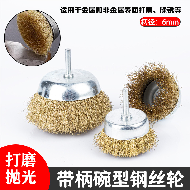 ロッド碗ワイヤーホイール柄付き碗型ワイヤーブラシ金属研磨除錆研磨ホイール銅メッキワイヤーホイール柄径6mm