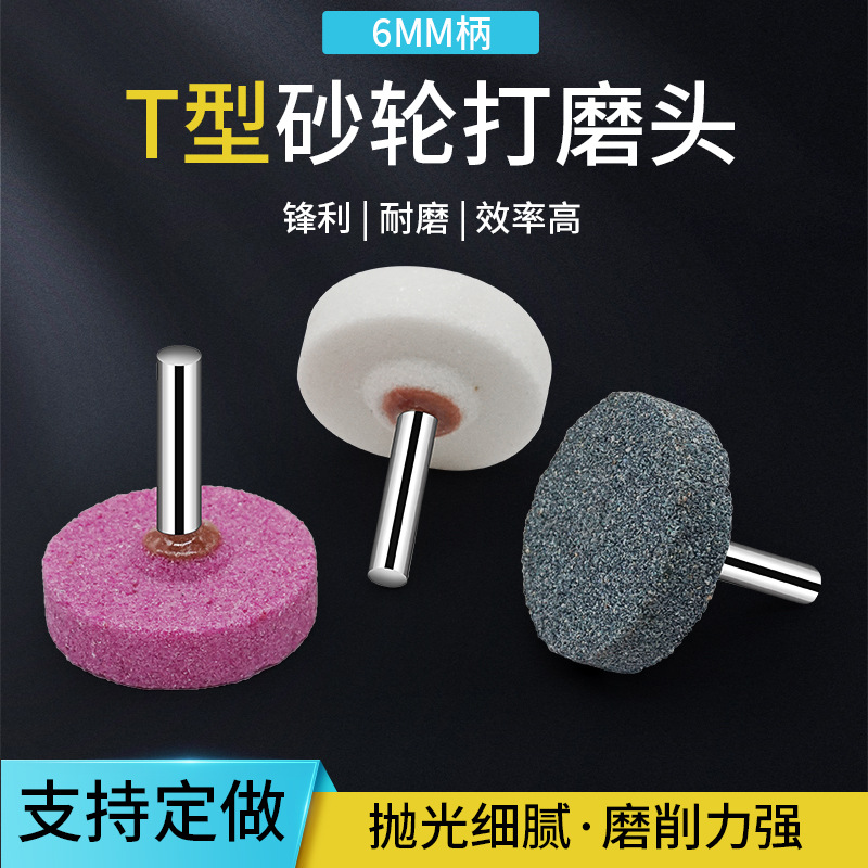 3/6柄T型砥石タングステン鋼研削ヘッド平形ブラウン赤色クロムコランダム円柱形柄付き電気研削ヘッドセラミックス研削