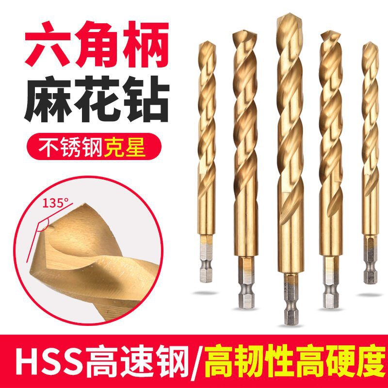 六角柄チタンメッキ麻花ドリル直柄高速鋼全磨製ステンレス金属専用穴あけ器ドリル