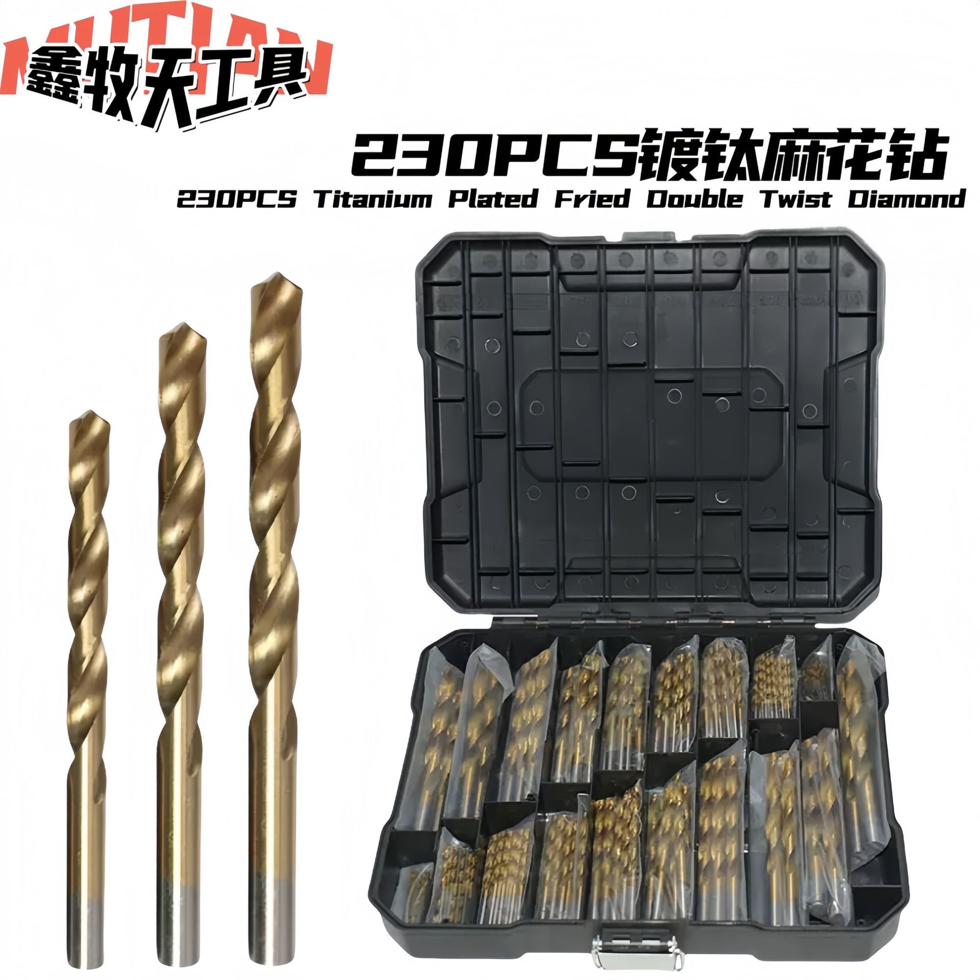 クロスボーダー230pcsチタンメッキストレートハンドル麻花ドリルドリル穴開けツールドリルセット木工ドリルメーカー直販
