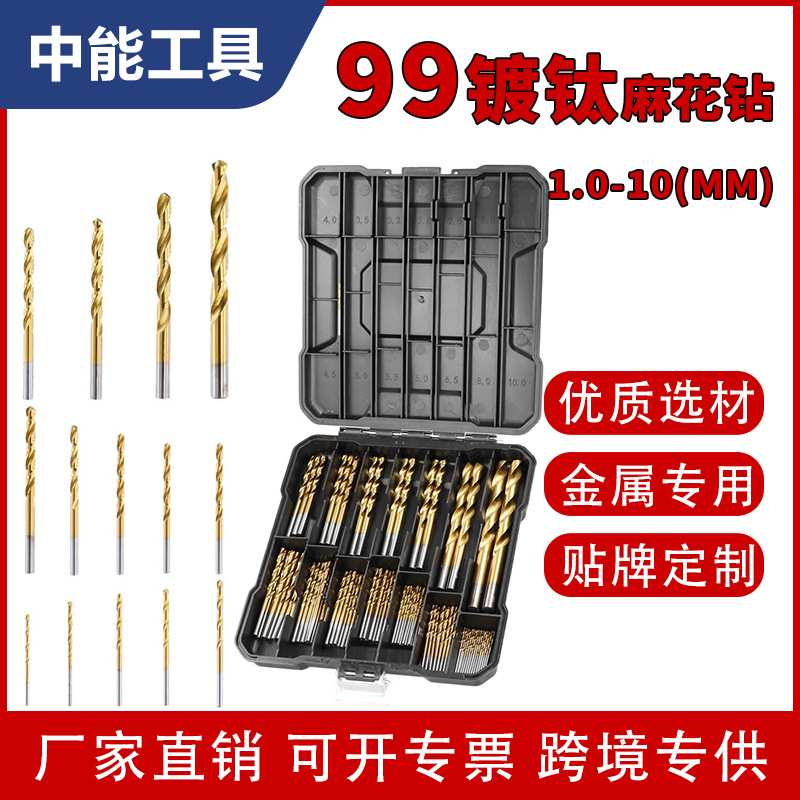 卸売りチタンメッキ窒化ストレートシャンク麻花ドリル13pc19pc50pc99pcクロスボーダー電気ドリルセット