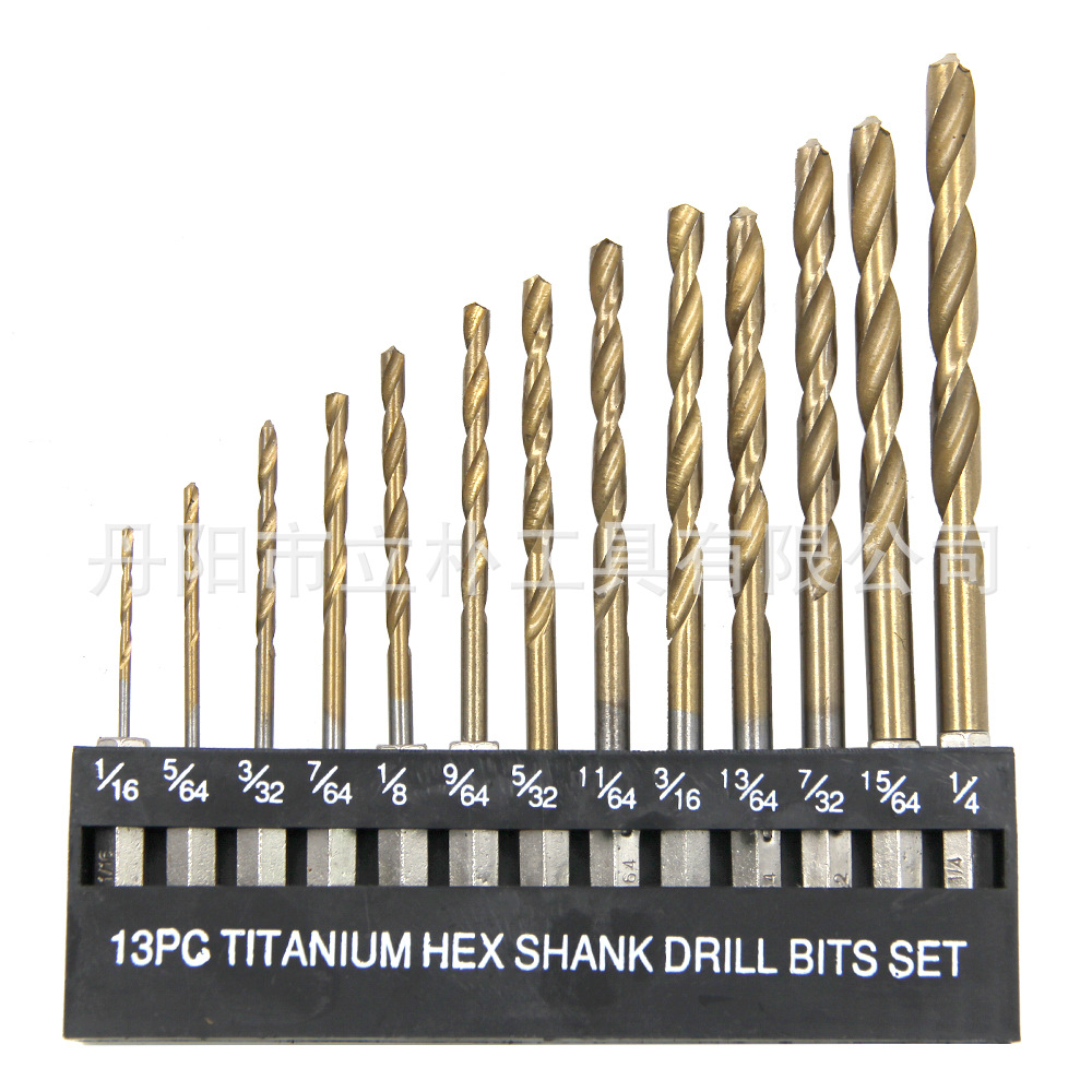 13pcsインチチタンメッキ六角柄麻花ドリル1/16-1/4電気ドリルドライバードリル風ロット