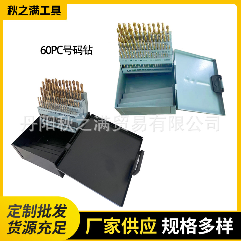 アメリカ標準ラウンドハンドル 60PC セットチタンメッキツイストドリル鉄ボックス番号ドリルビットパンチング穴オープナーツールドリルビット i