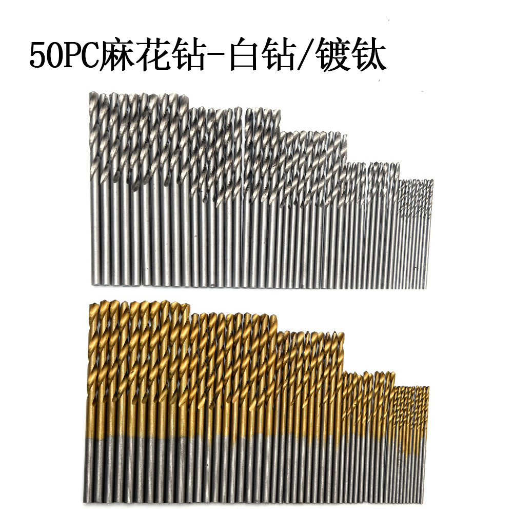50PCストレートハンドル麻花ドリルチタンメッキ白ドリル電動ドリル穴加工穴開け小麻花