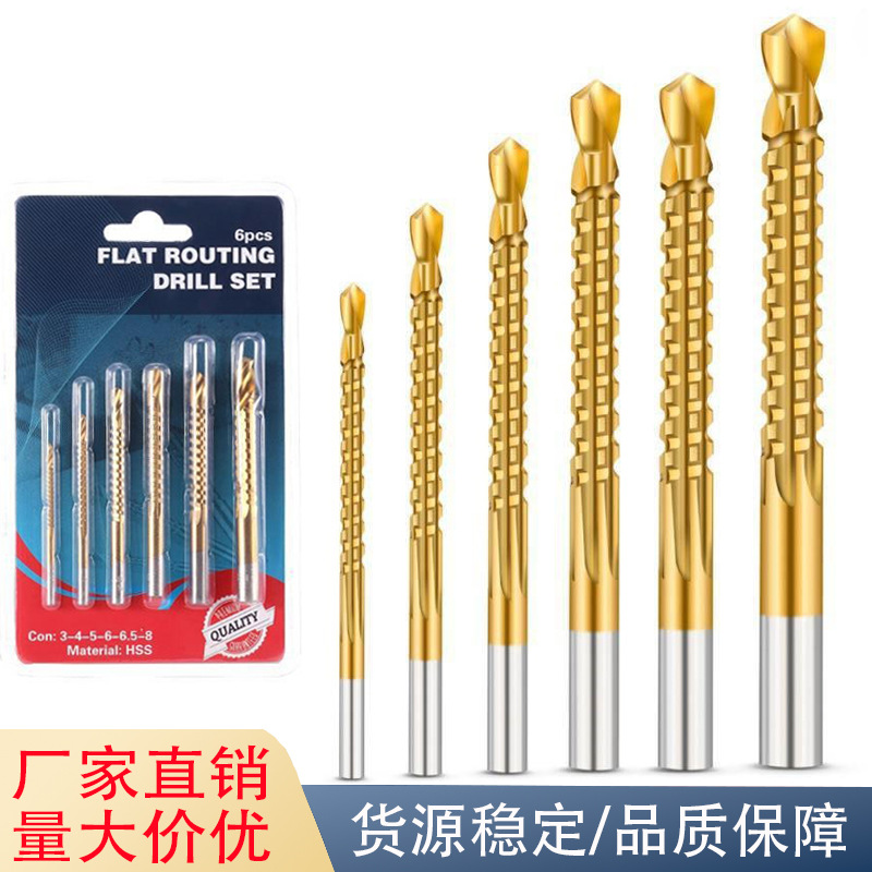 ノコギリ麻花ドリル大全ドリル鉄ステンレス専用木工ドリル高速鋼丸柄6点セット直柄
