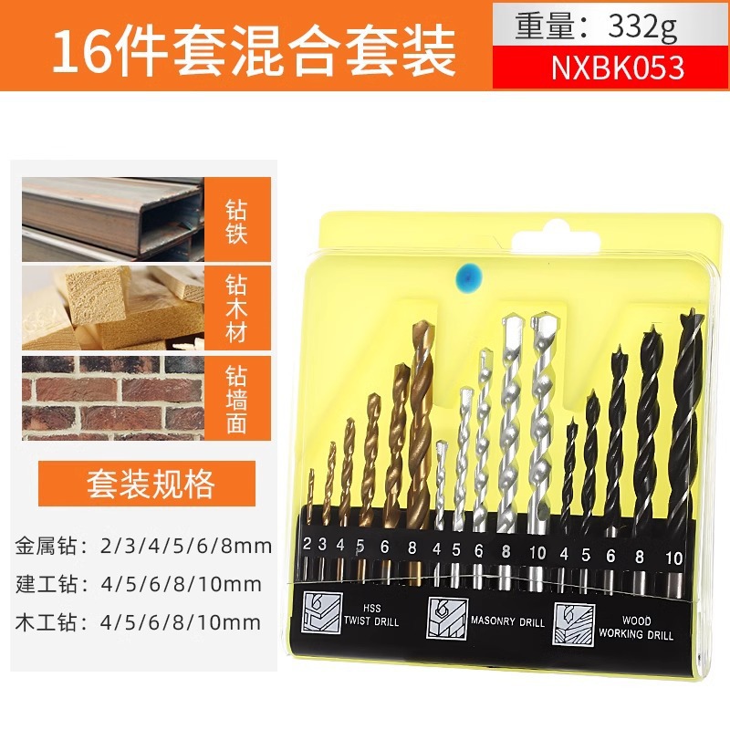 ストレートハンドル2-16mm箱入り建工ドリル鉄専用木工白鋼チタンメッキ混合麻花ドリルセットドリル
