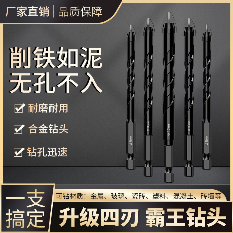 クロスボーダー六角柄黒十字ガラスドリルタイル穴あけドリルセラミック壁アイアウト覇王ドリルセット