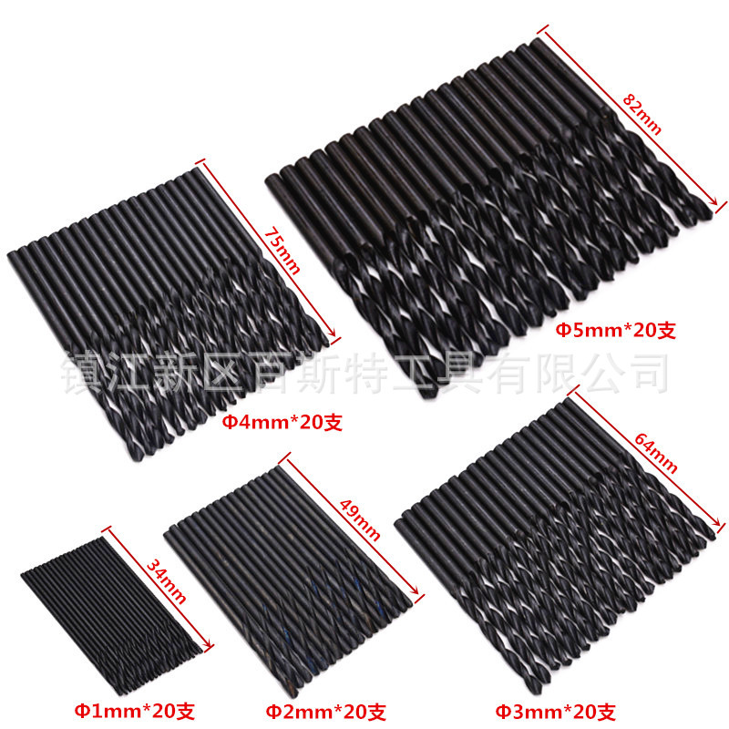 100本高速鋼直柄麻花ドリル1-5mm 4241圧延麻花ドリル窒化黒ドリル