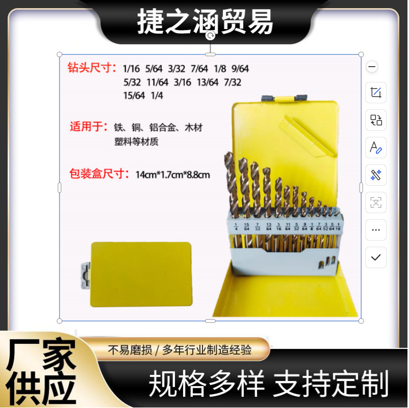 13個入り鉄箱インチチタンメッキツイストドリル、国境を越えた売れ筋の穴あけ専用