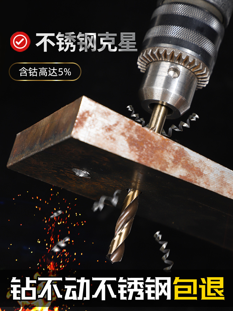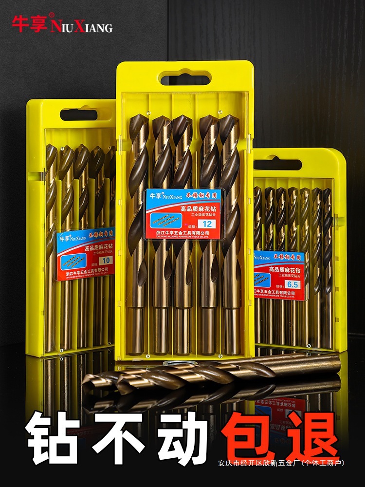 ツイストドリルビット、ステンレス鋼、コバルト含有ハンド電気ドリル、鋼穴あけ、超硬タングステン鋼合金、ストレートハンドル回転ヘッド