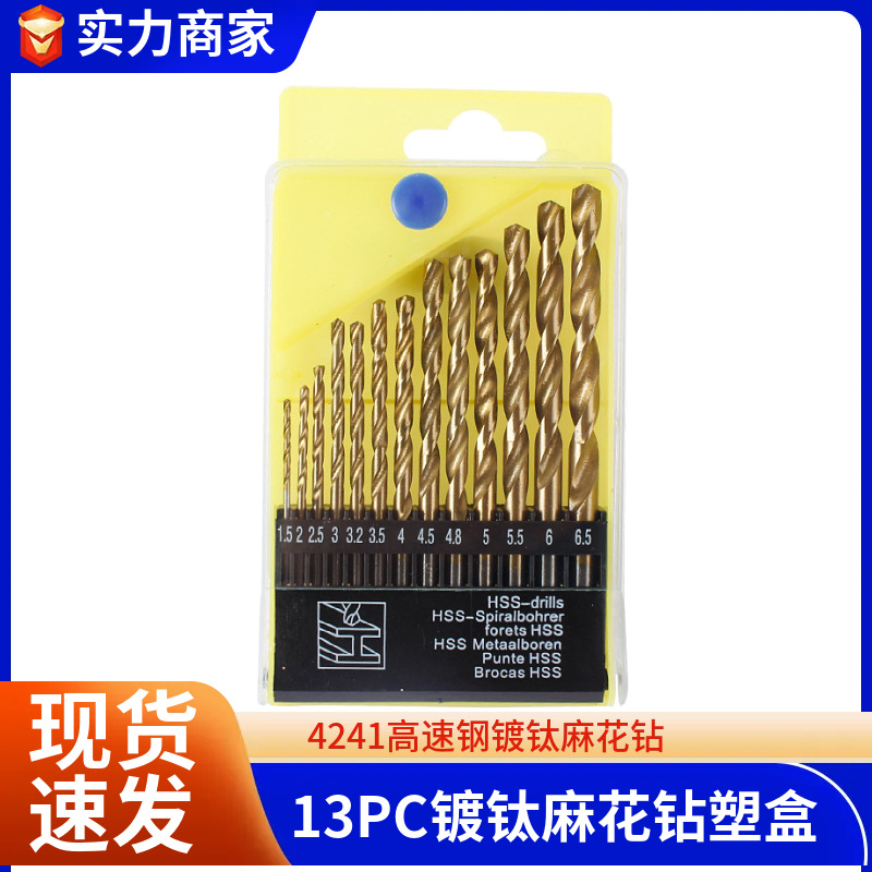 13PC チタンメッキツイストドリルプラスチックボックスセット高速度鋼チタンメッキツイストドリルコンビネーションドリルツール