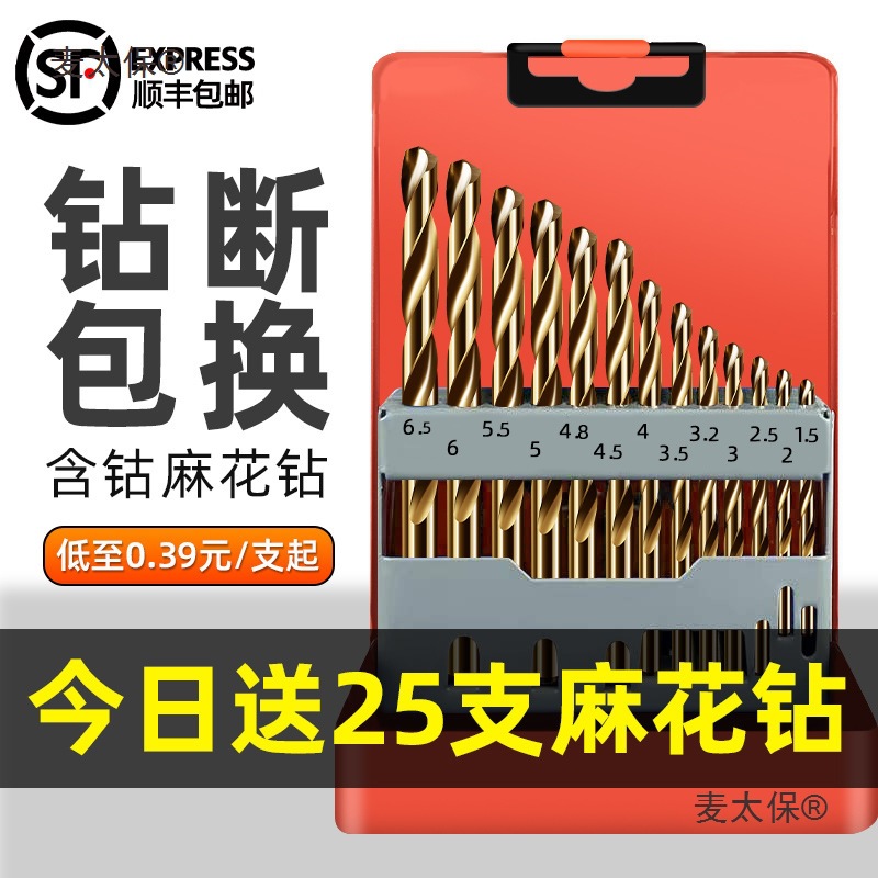 麻花钻头套装不锈钢专用手电钻合金打孔钢铁超硬直柄含钴转麦太保