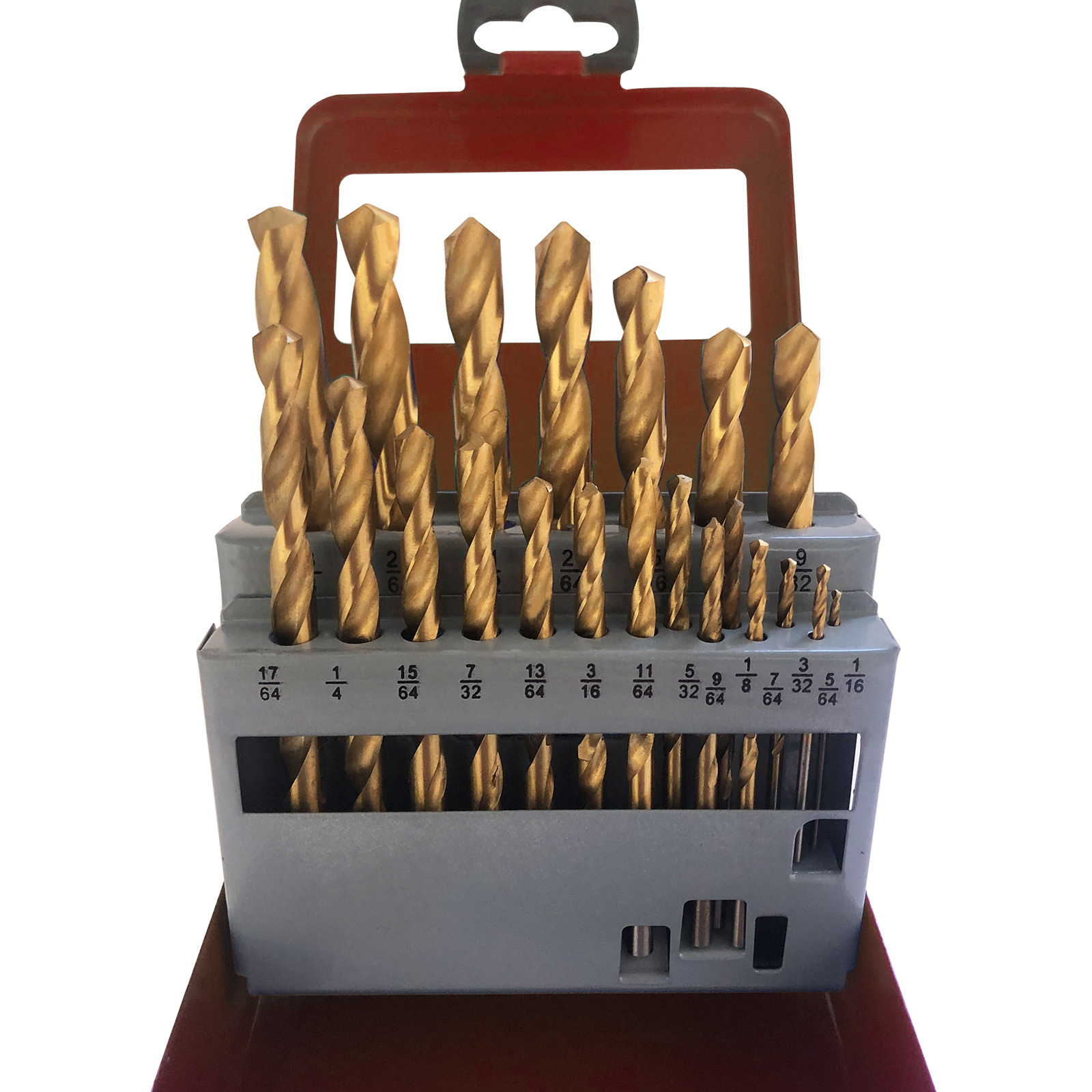 ストレートハンドルツイストドリルビット 21 個鉄箱入り金属穴あけツールツイストドリル 1/16-3/8