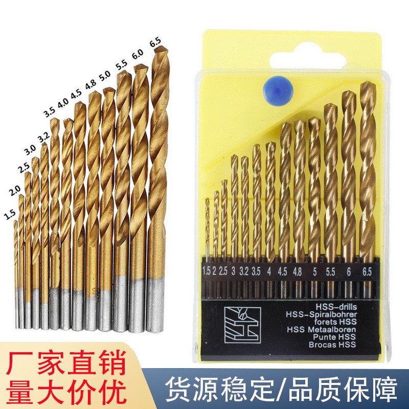 ストレートハンドルツイストドリル 13本セット コンビネーションドリル 木板鉄板穴あけ HHS高速度鋼チタンメッキツイストドリル