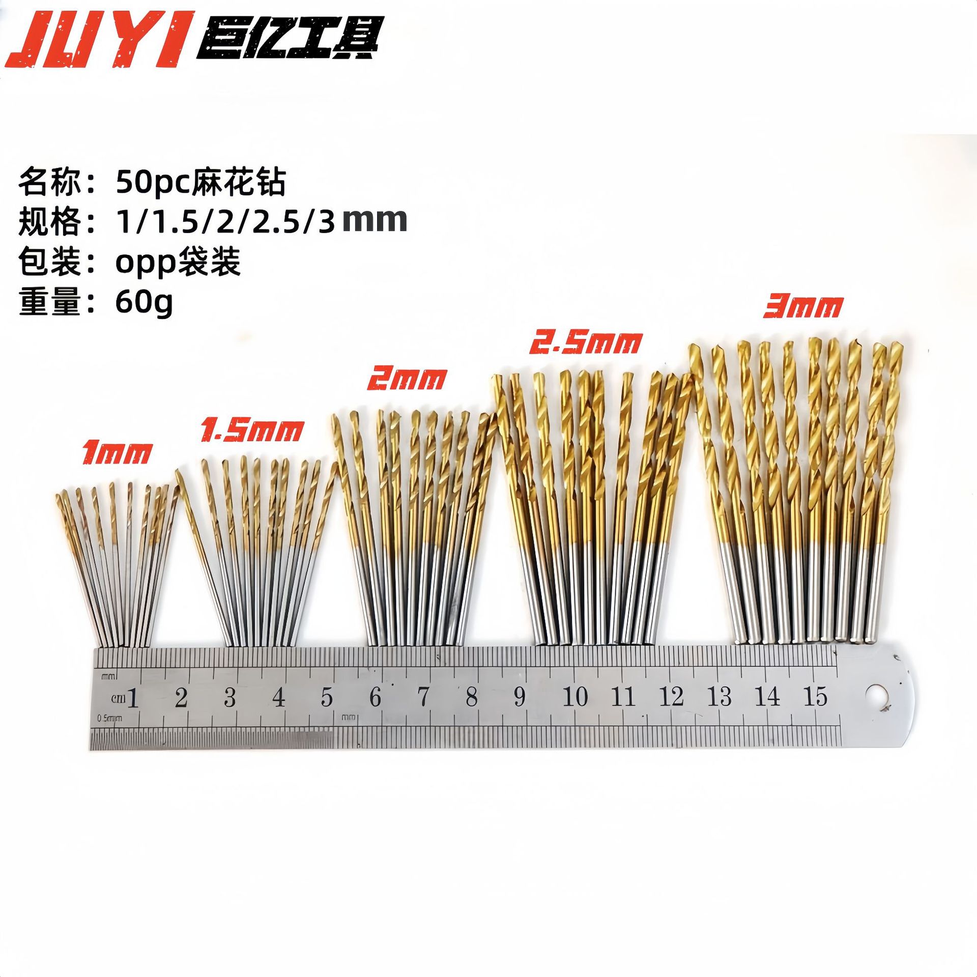 50pc麻花ドリルセット1-3mmドリルhss高速度鋼チタニウムメッキ麻花ドリル木工穴あけ工具セット