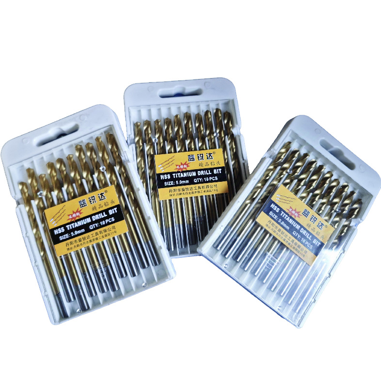 アップグレードプラスチック箱にチタンメッキ黄色麻花ドリルビット、全研磨ドリル、直柄麻花ドリルの各種規格
