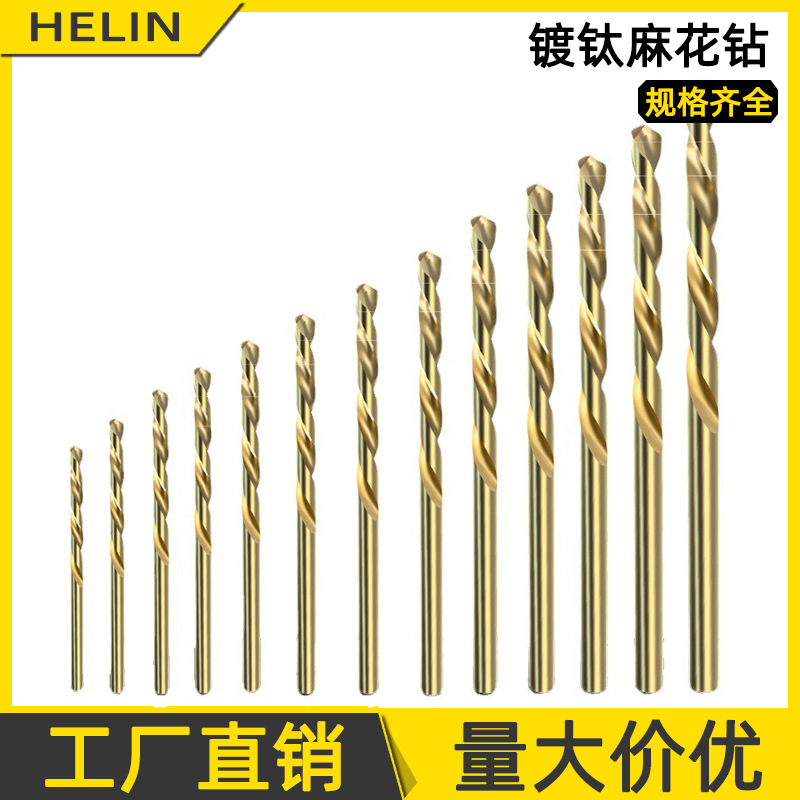 4341チタンコーティング高速鋼製ツイストドリルビット、熱間加工HSSストレートシャンクドリル、薄板金属・鉄板・木工用、売れ筋商品