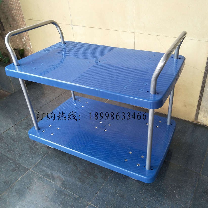 平板二重手押し車プラスチック工具車屋外ガードレール付き静音車配達車二重手押し車