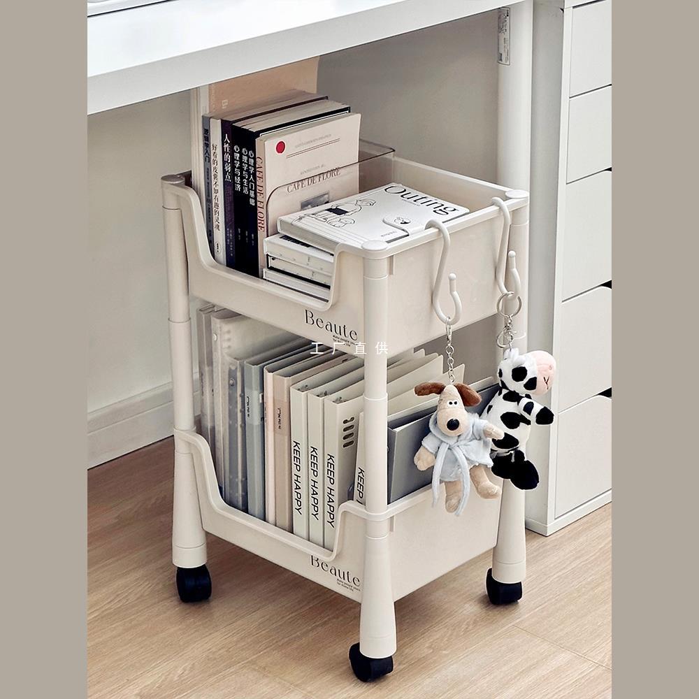 床に落ちた小さな本棚オフィスの机の下に収納棚が移動可能な寮のカートには、車輪付きの多層雅通思がある