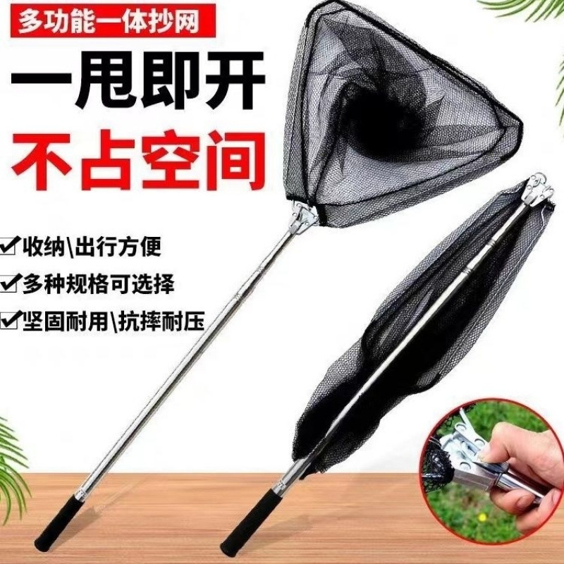 ステンレス折りたたみ釣り伸縮棒網兜フルセット釣り網黒坑釣り用品装備クロスボーダー