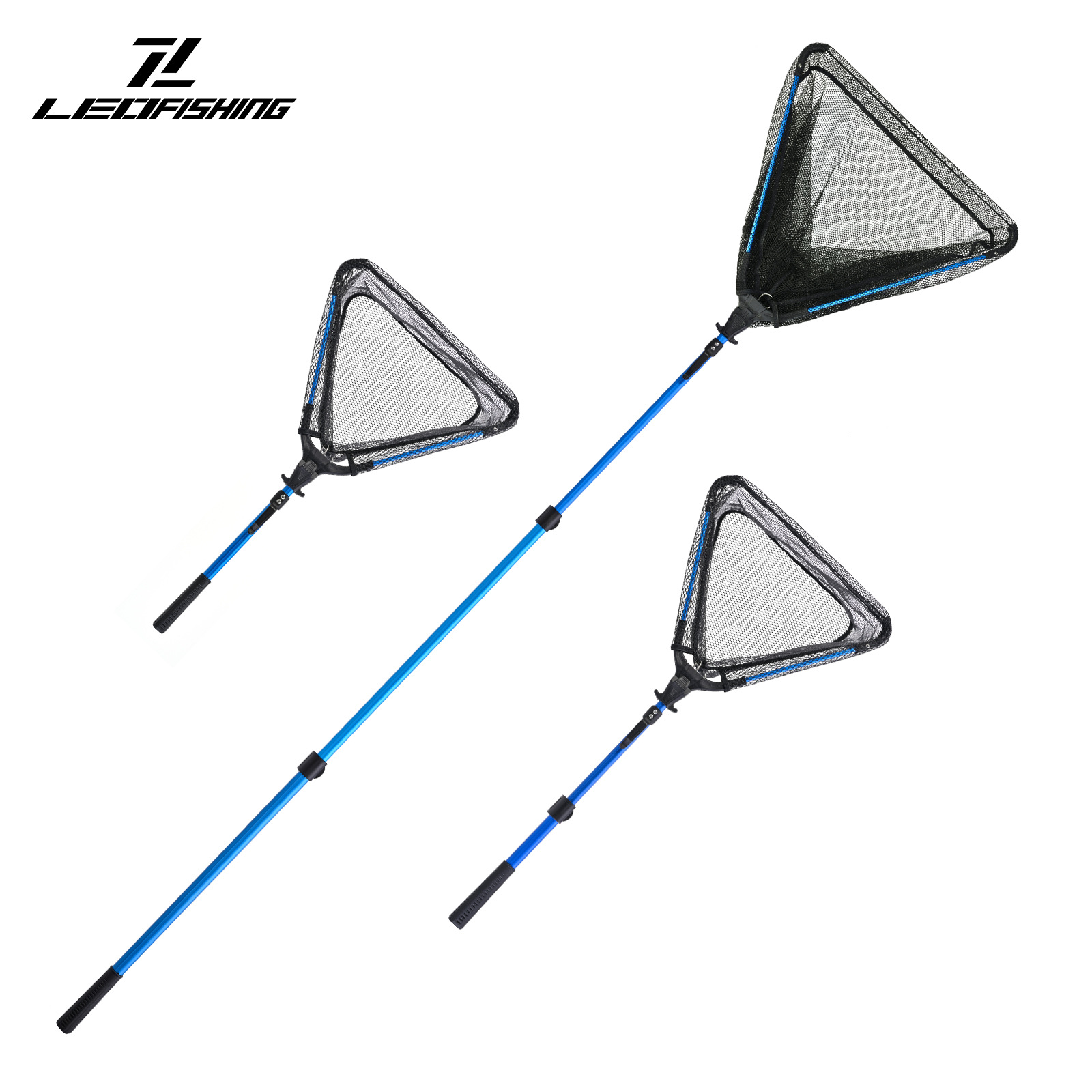大型魚網、折りたたみ三角形スーパーネット、ポータブル伸縮ロッド、釣り用アルミ合金網袋の完全なセット