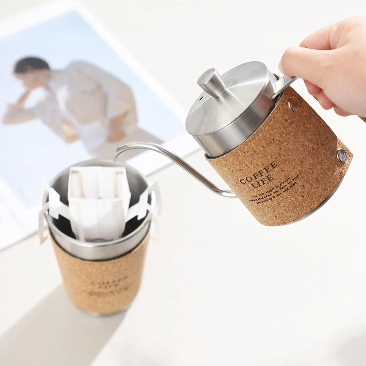 手沖コーヒーポットセット環境保護循環コルクセット手沖ポット304ステンレスコーヒーカップ豆磨き機