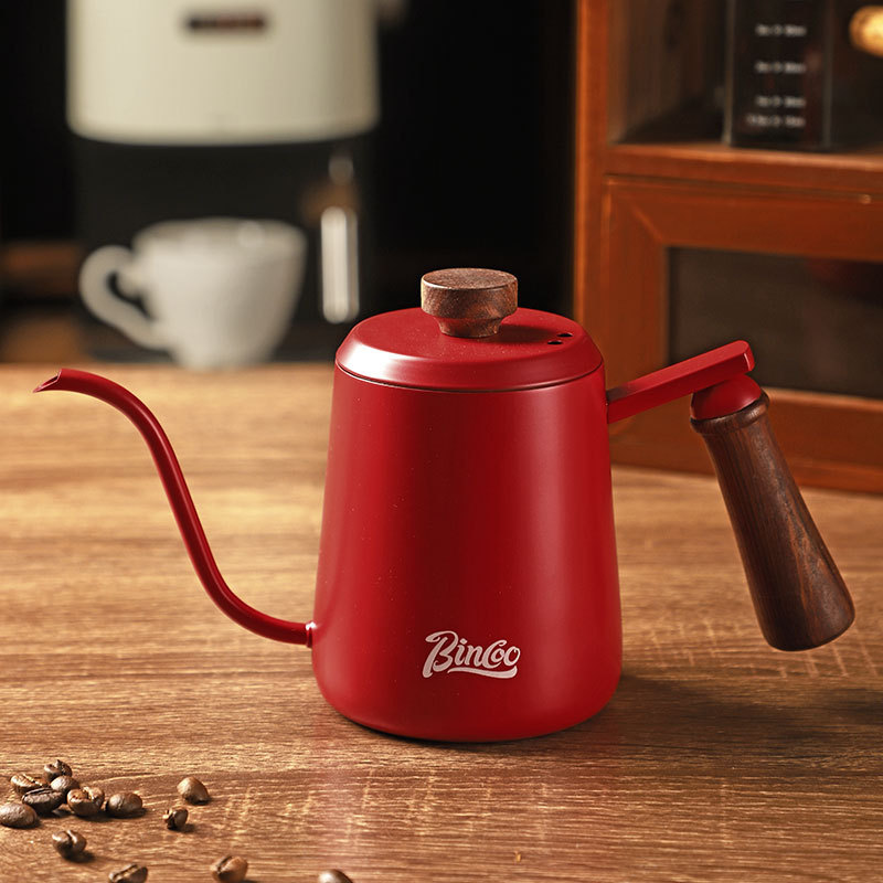 Bincoo 手淹れコーヒーポット 長口 細口 ステンレス製 家庭用 手淹れ 吊り耳 ドリップコーヒー粉器具 蓋付き