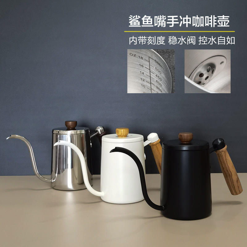 ステンレス製手沖コーヒーポットスケール付き木ハンドル304テフロン家庭用細い口マカロン粉滴フィルターポット
