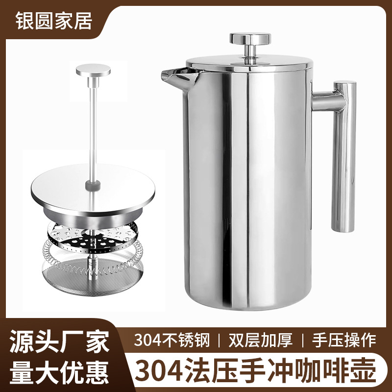 304ステンレス製の圧力ポットの手でコーヒーポットを流す二重のフランス式フィルターポットの茶器を入れる