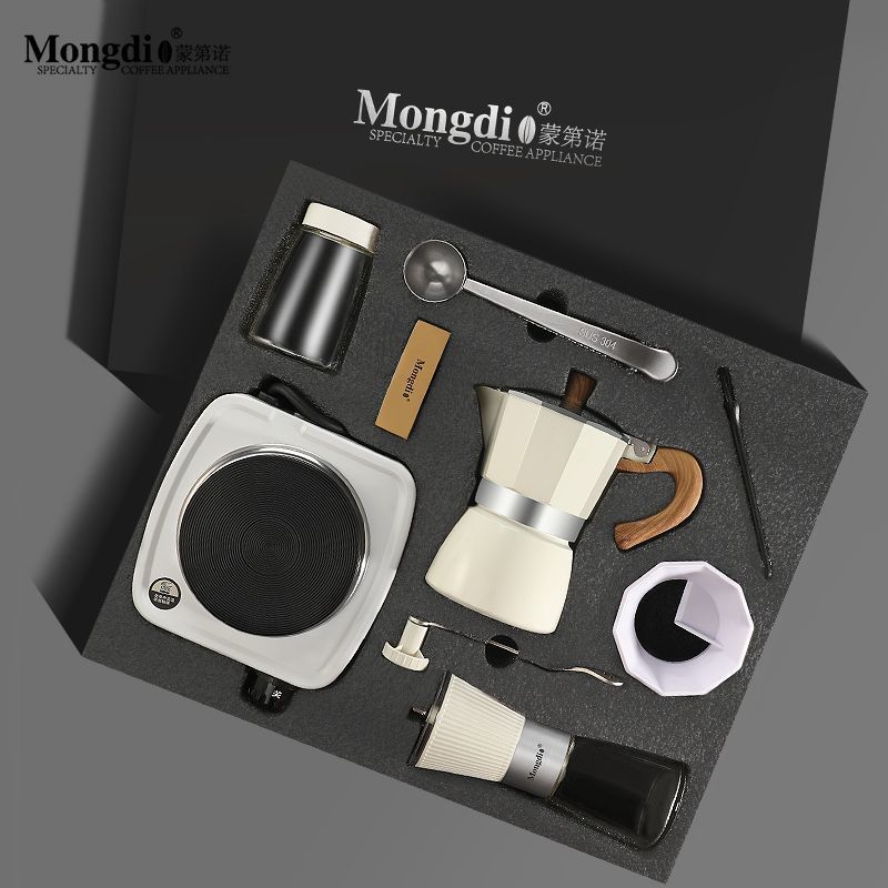 Mongdio モカポットセット ギフトボックス 家庭用コーヒーポット 手挽きコーヒーマシン 手淹れコーヒーセット ギフト