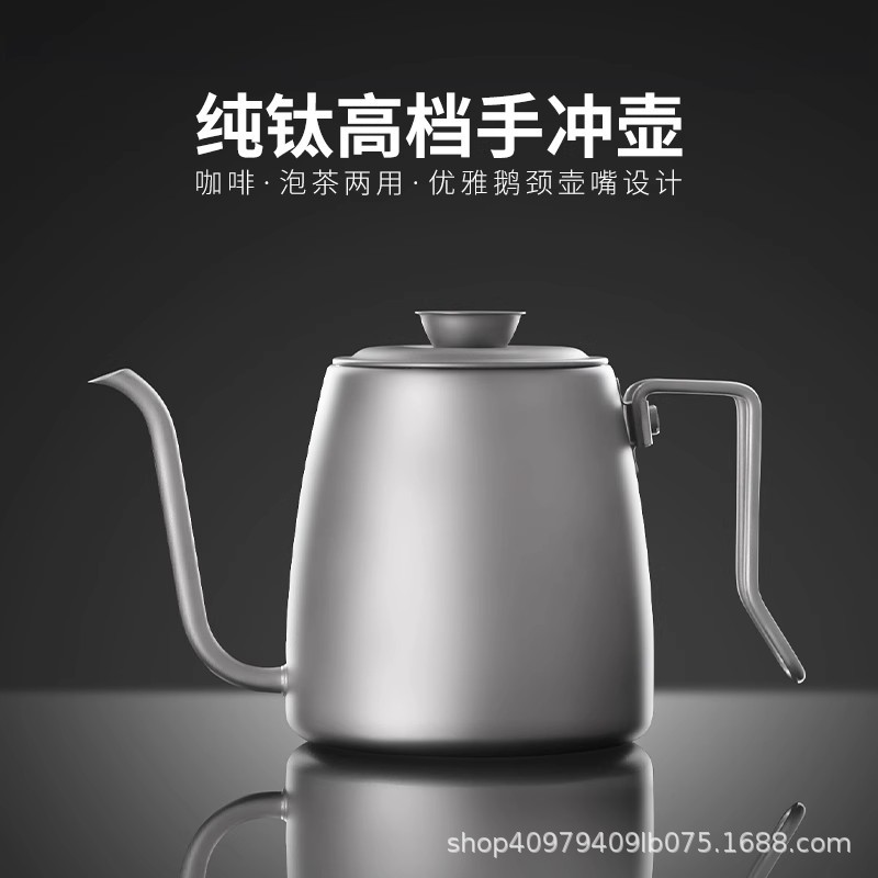 純チタン手沖コーヒーポット旅行屋外携帯用耳の長い口ポット高級家庭用チタン合金の細い口ポットセット