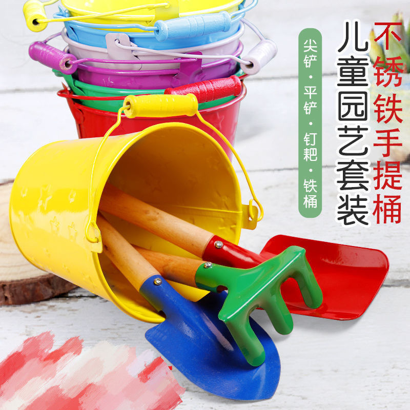 園芸シャベル三点セット子供栽培多肉盆栽シャベル雪遊び道具ビーチ鉄桶砂土を掘る