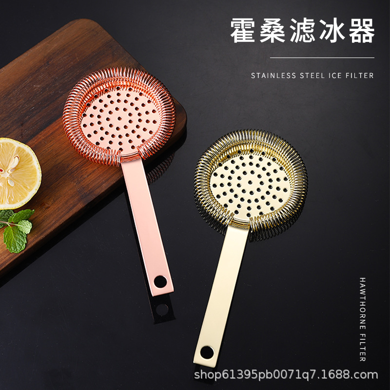 メーカー卸売ステンレス鋼アイスフィルターバーテンダースプリングフィルターバーアイスバーテンダーツールチタンメッキスプレー塗装