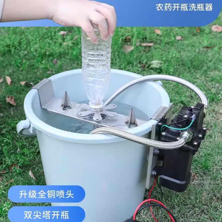 農薬の瓶を開けて瓶を洗う器のステンレス高圧の洗浄機