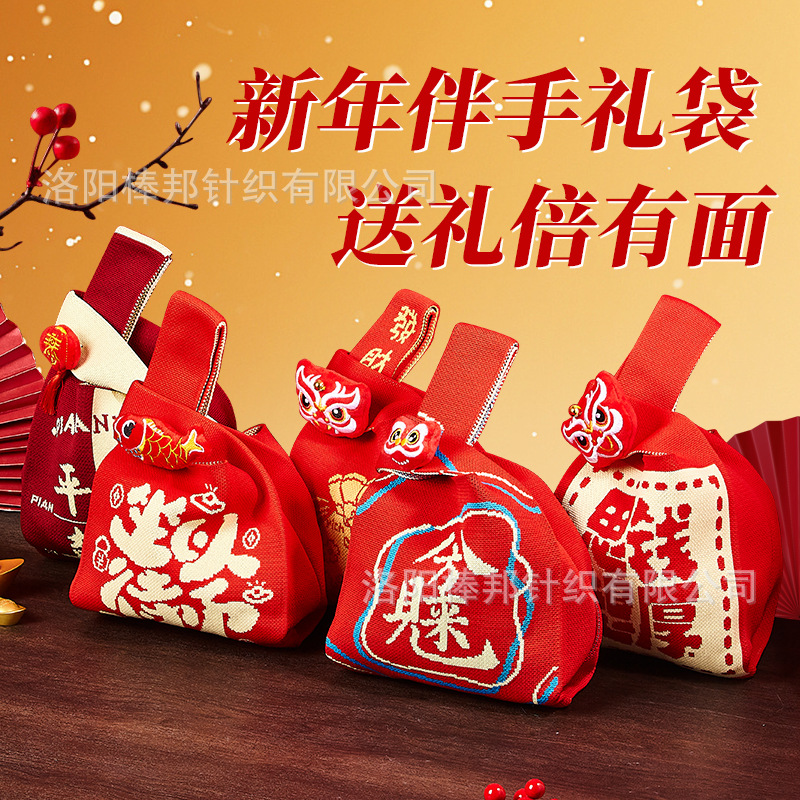 2025年新年蛇年礼袋ギフトボックスお土産ニットバッグ赤いお祝いバッグ携帯新商品スポット