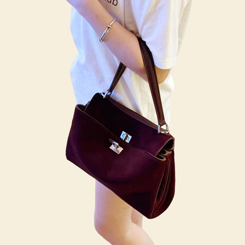 25新型ローデンヌバックレザートートバッグ 軽量高級感ソフトスエードロック付きケリーバッグ ショルダー/クロスボディバッグ