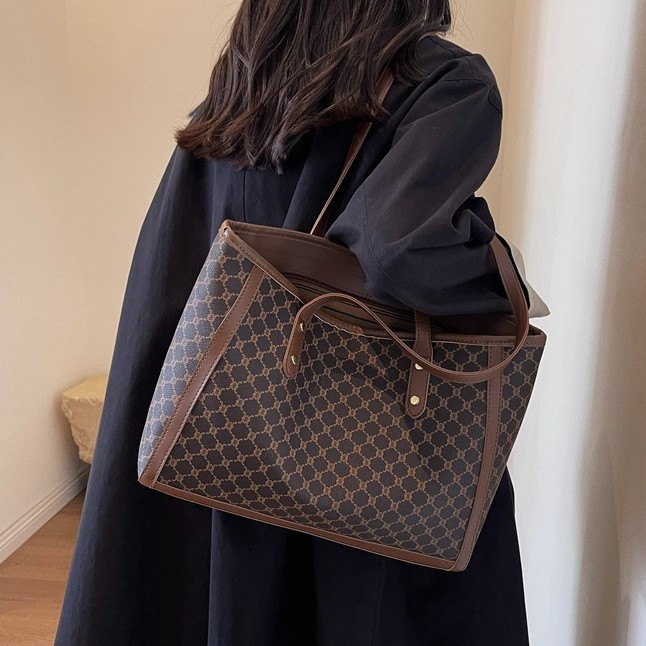 カジュアル大容量バッグレディース2024新作秋冬大学生レッスンバッグファッション通勤ワンショルダートートバッグ