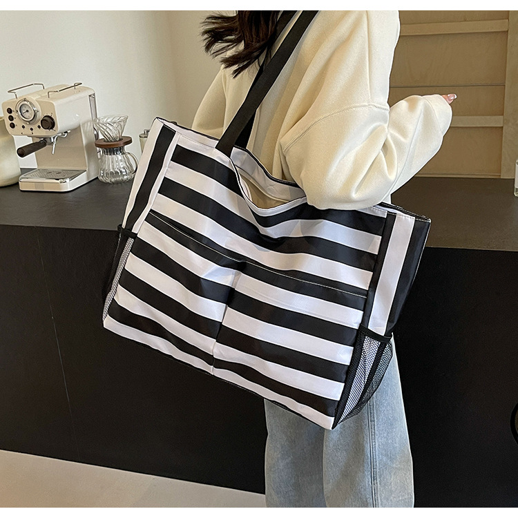 外国貿易の新型ストライプのキャンバスバッグの軽いお母さんはサラリーマンの通勤カジュアルなシングル肩を包んで大容量の女性バッグを持ちます。